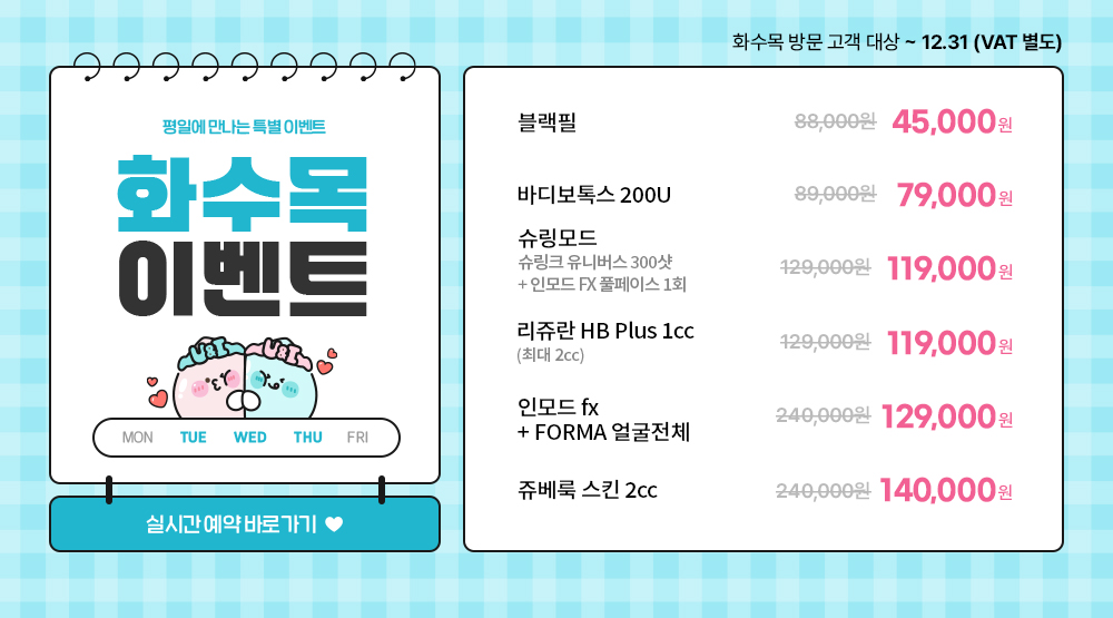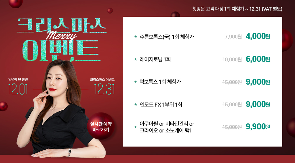연말 리프팅 & 탄력 강화 패키지 : 울쎄라피 프라임 400샷 + 쥬베룩 스킨 2cc + 리쥬란힐러 2cc