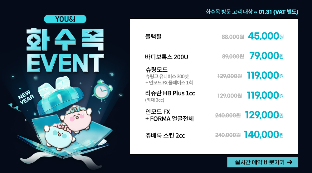 쥬비덤 3cc + 주름보톡스(국산) 1부위
